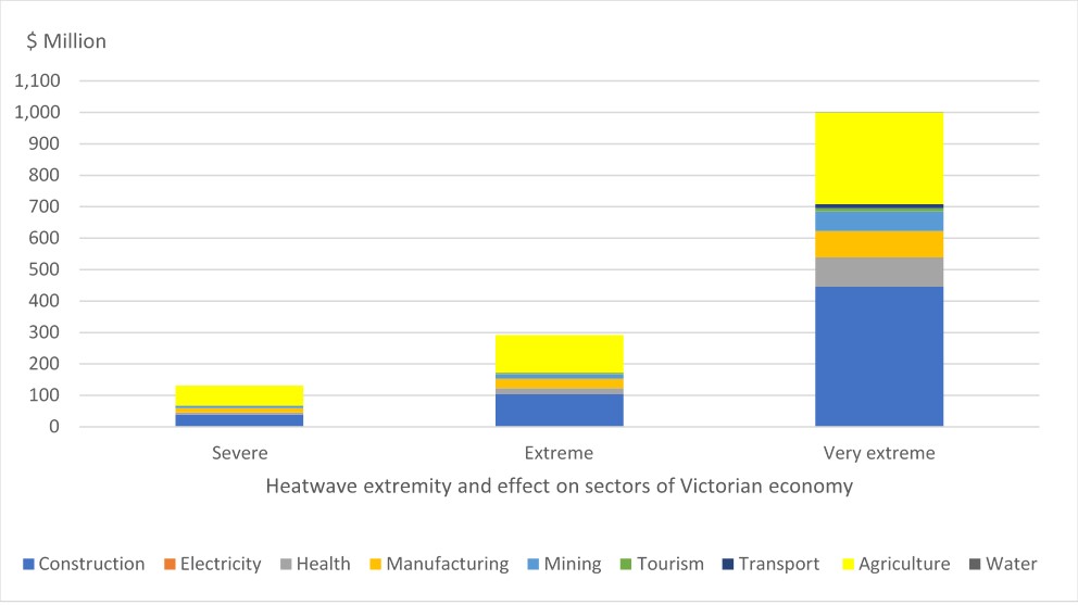 We looked at the impacts of severe, extreme and very extreme heatwaves under Victoria’s current economic structure in 11 regions.