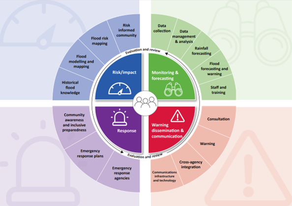 - Strengthening flood preparedness and response by extending technical support to improve the application of existing flood Early Warning Systems that are in place across the Pacific region.