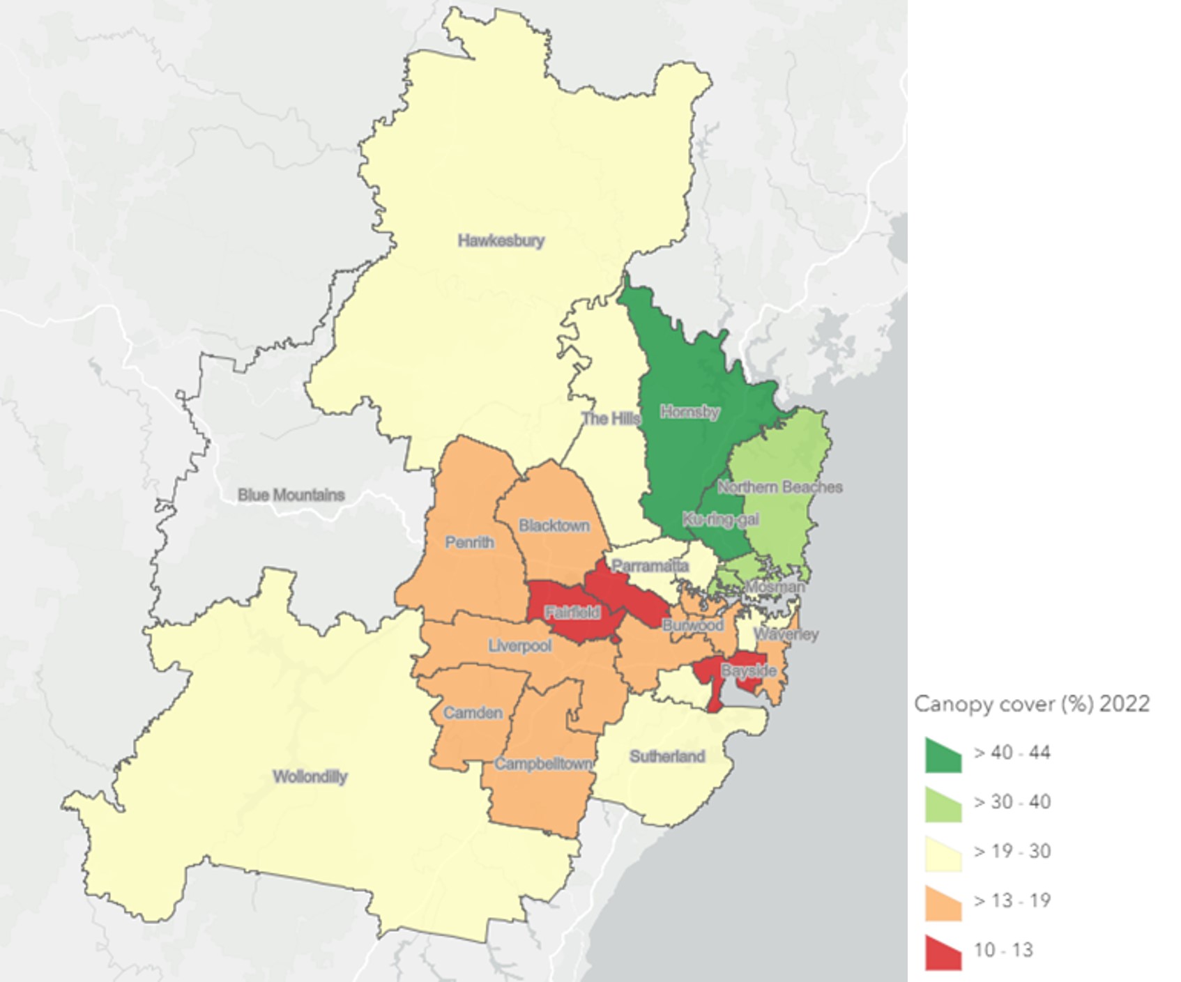 The NSW Government has set a target to increase tree canopy cover across Greater Sydney to 40%, from where it currently stands at approximately 22%. Crucial to achieving Greater Sydney’s canopy target, are 33 local government areas (LGAs) that individually implement tree planting and retention mechanisms, which ultimately affect Greater Sydney’ canopy growth as a whole.