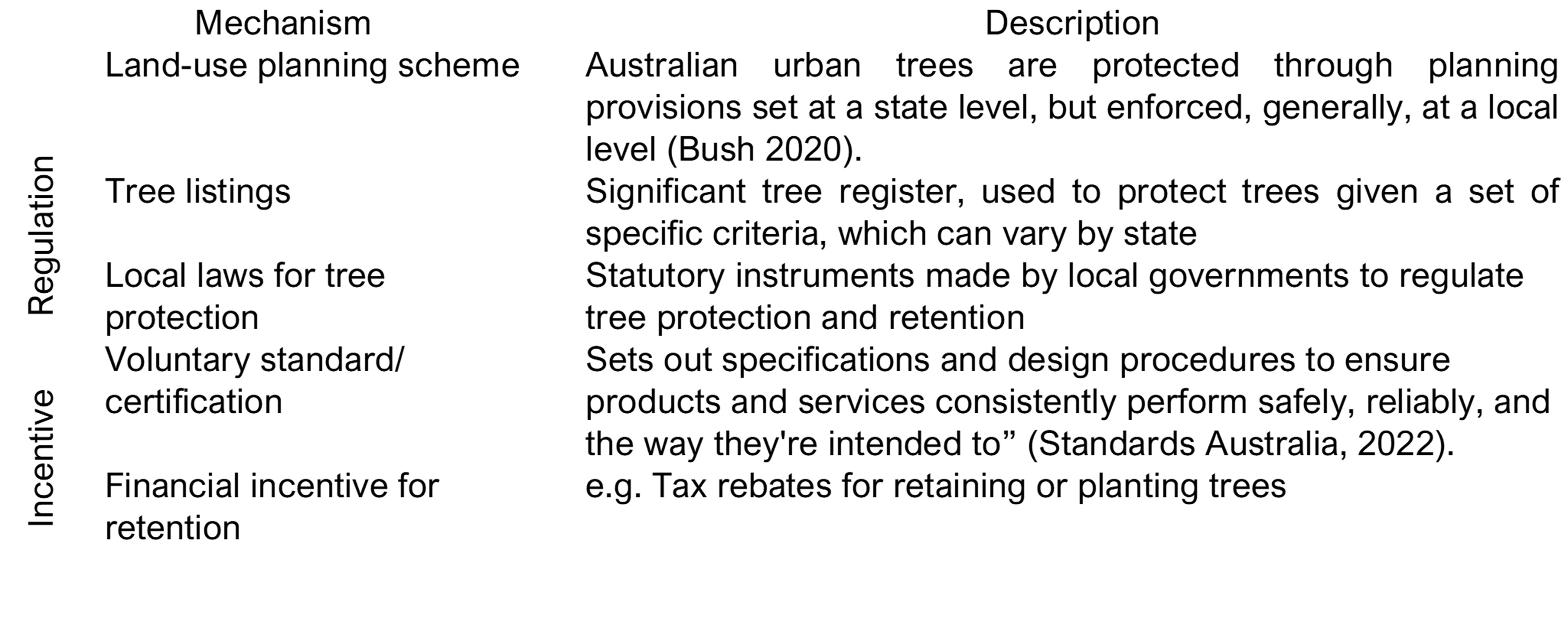 Table 1 Regulatory and Incentive mechanisms used in private canopy retention adapted from (Ordóñez-Barona et al., 2021
